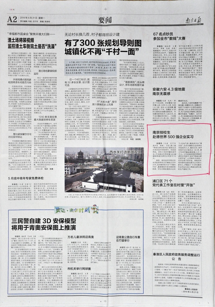 《南京日报》A2版—南京技校生赴德世界500强企业实习