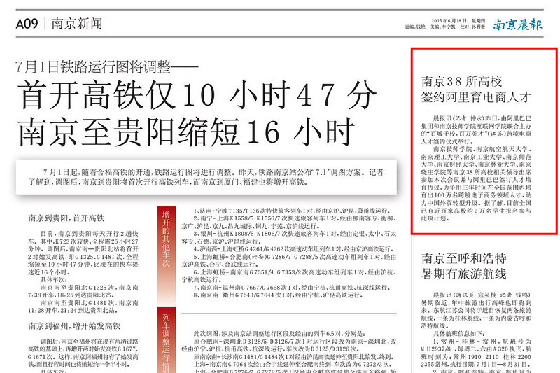 《南京晨报》A09版—南京38所高校签约阿里育电商人才