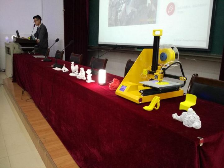 李总事先做了充分的准备,不仅用PPT介绍了3D打印技术的产生、发展和目前热门的分类,还带来打印设备,现展示了打印技术和打印成品。讲座上,该公司的专家们同学生们分享了自己的一些创业经历和感受,师生经过这次讲座,受益匪浅,对创业知识和时下热门的3D打印和互联网+等概念有了更深刻的认识。