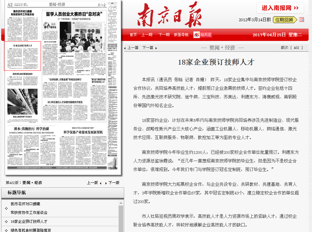 《南京日报》A2—18家企业预订技师人才