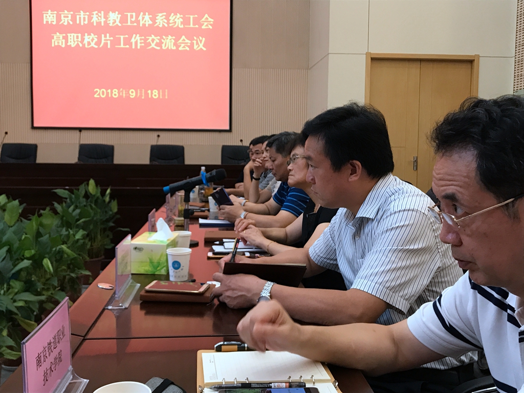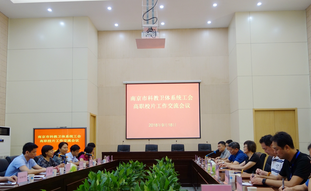 2018年9月18日,南京市科教卫体系统在我院召开高职校片工作交流会议。科教卫体工会联合会主席唐医文主持会议,华体会官方版网站登录入口、南京晓庄学院、金陵科技学院、等高职院校的工会主席参加了会议。