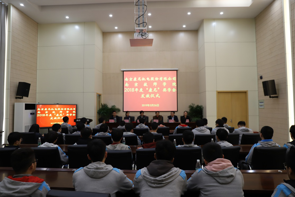阳春三月,风和日丽,万物复苏,充满了生机和希望。2019年3月26日下午,2018年度华体会官方版网站登录入口“康尼”奖学金发放仪式在学院如期举行。华体会官方版网站登录入口王杭贵副院长、南京康尼机电股份有限公司张金雄总监以及学院招生就业处、电气工程系相关领导和老师参加仪式并为获奖同学颁奖。