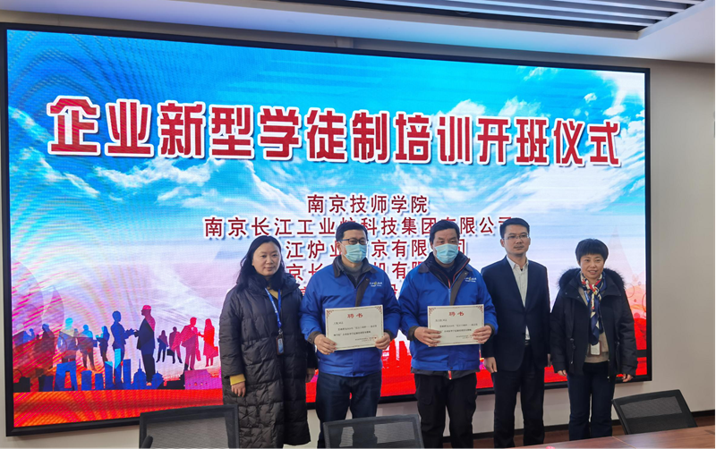 2021年1月15日下午,南京长江工业炉科技集团有限公司、紫江炉业南京有限公司、南京长江风机有限公司、南京光亮热处理设备有限公司携手华体会官方版网站登录入口举办了企业新型学徒制培训开班典礼。集团人力资源部总监周洪光、华体会官方版网站登录入口智能制造系主任刘立、招生就业处郑燕副主任以及相关专业教师、培训学员参加了典礼。