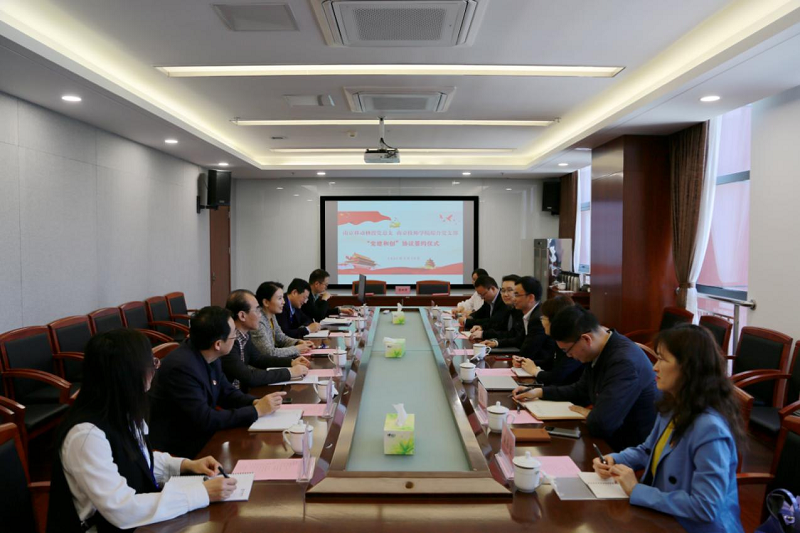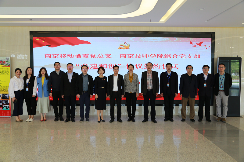 为认真贯彻落实院党委党史学习教育的工作部署,4月29日上午,学院综合党支部与南京移动栖霞党总支举行了“党建和创”签约仪式。南京移动栖霞分公司经理兼党总支书记孙晓星、南京移动市场部副经理索珊珊;学院党委书记张金梅,党委副书记、院长侯放,副院长朱胜强,副院长、综合党支部书记徐建华等校企领导出席了签约仪式。