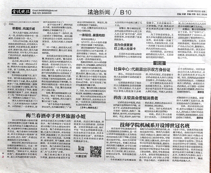 《金陵晚报》B10版—《技师学院机械系开设博世冠名班》