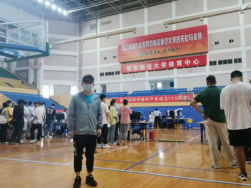 “在抗击疫情的关键时期,我作为一名华体会官方版网站登录入口的教师,坚决不掉队。”王老师主动请缨,加入此次疫苗接种现场工作中。8月23日当天,她早早来到南京师范大学疫苗接种点,积极组织学生及家长登记个人信息、查验苏康码、测量体温,耐心做好引导和解释工作,确保接种现场规范、有序、高效。