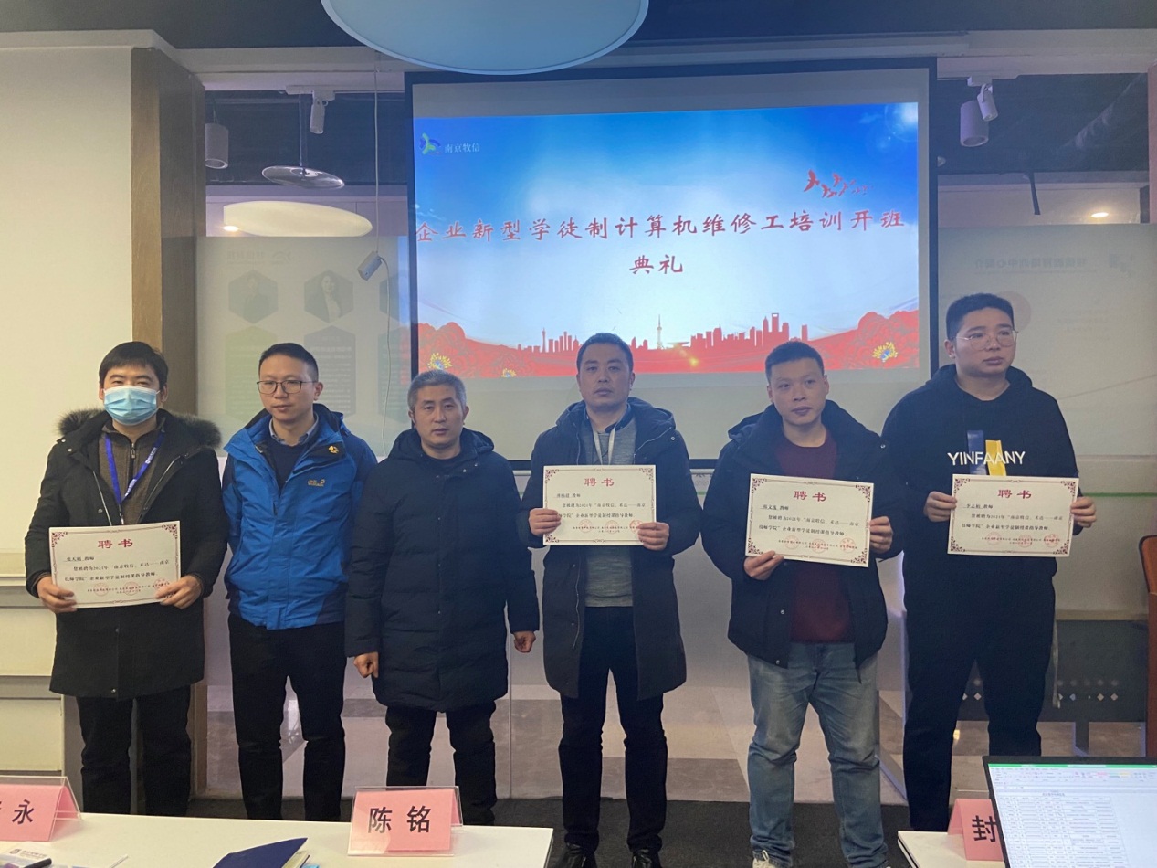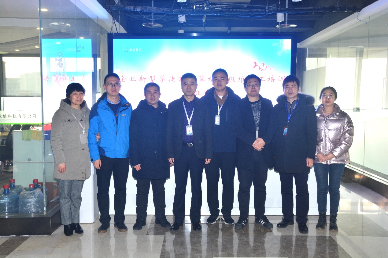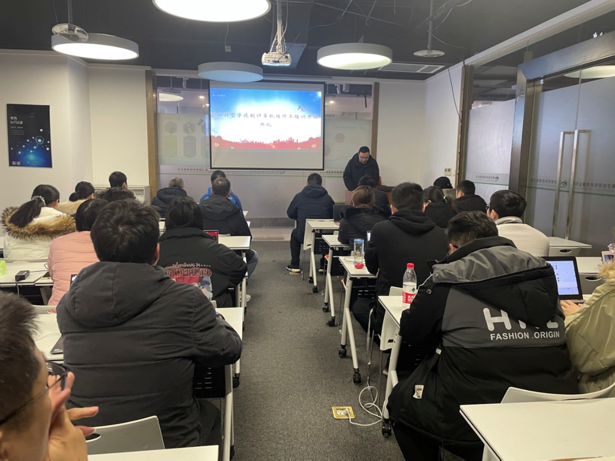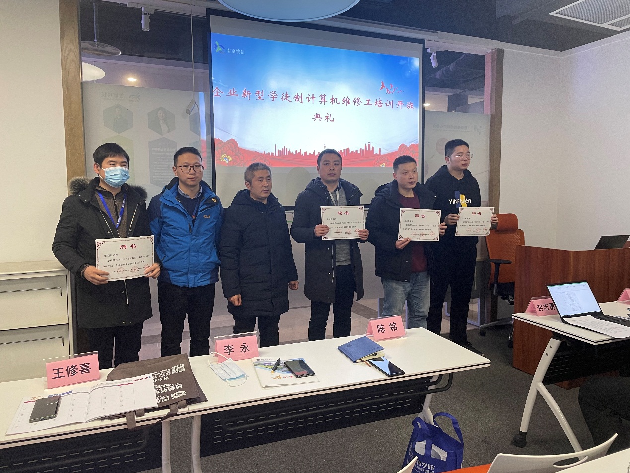 2022年1月11日,华体会官方版网站登录入口在南京牧信科技有限公司(南京禾达信息有限公司)举行了企业新型学徒制培训班的开班仪式。出席本次开班仪式的有牧信科技副总陆冬昀、经理沈碧英、技师学院招生就业处副主任陈铭、信息技术系副主任李永、教师代表王修喜和班主任蔡敏等。两家企业属关联公司在同层办公,因此开班后将采取合班授课形式,一共40名学员参与培训。