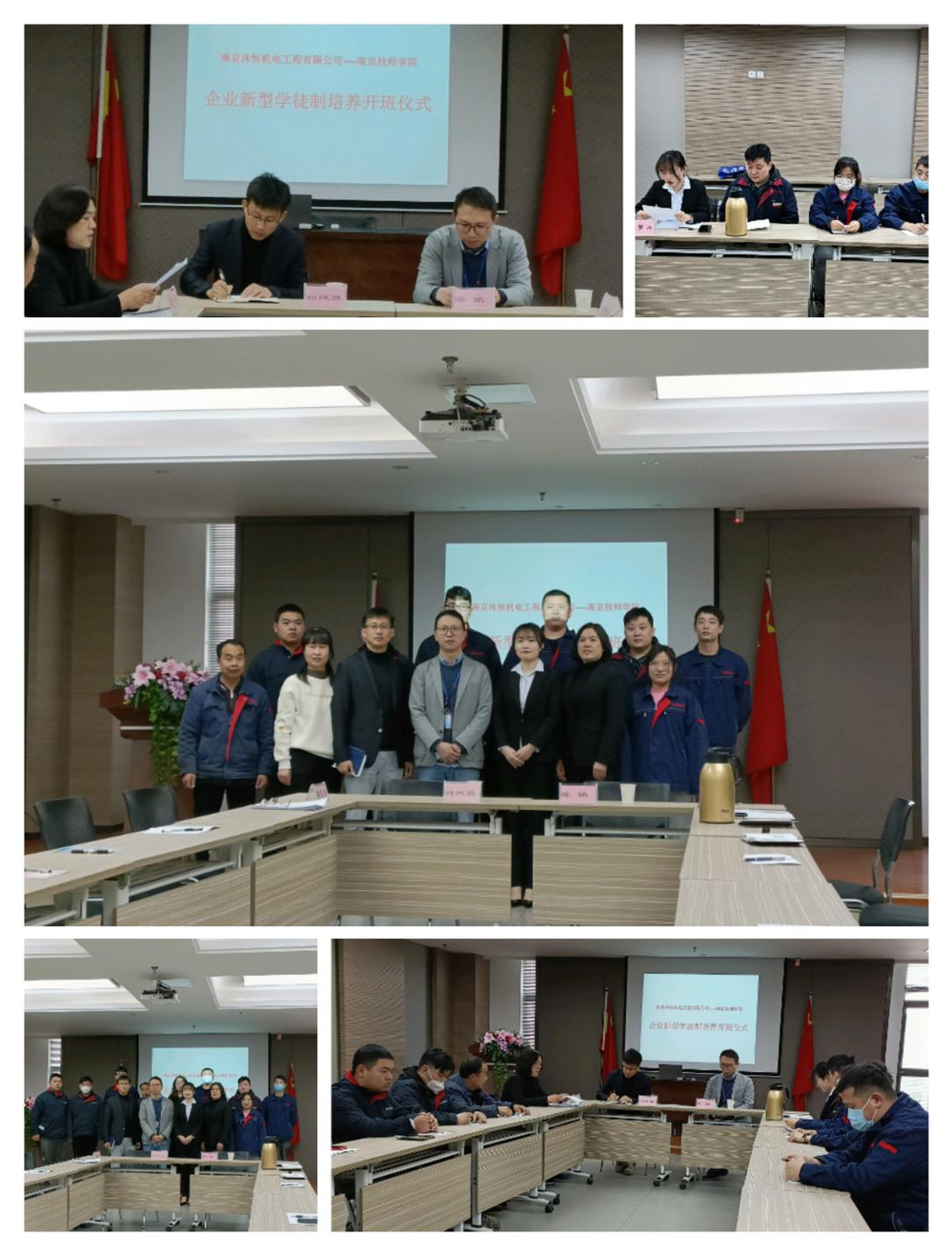 南京沐恒机电工程有限公司副总经理周梦月,华体会官方版网站登录入口招生就业处副主任陈铭、电气工程系副主任孙凤恩,部分新型学徒学员参加了本次开班仪式。