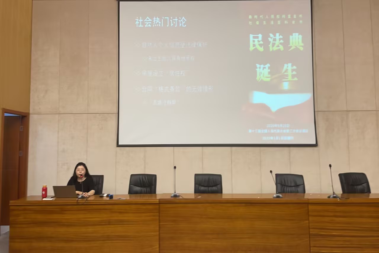 为广泛开展民法典宣传教育活动,促进民法典入脑入心,营造学生尊法学法守法用法的良好氛围,529日下午,南京市人社局在我院开展《中华人民共和国民法典》宣传进校园活动,戎霞律师来到我院,为学生讲解《中华人民共和国民法典》相关知识。