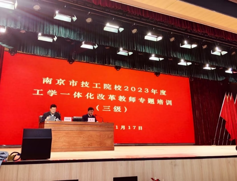 为积极推进工学一体化技能人才培养模式,建设一支高素质、专业化、创新型的技工院校工学一体化教师队伍,11月17日至20日,华体会官方版网站登录入口顺利举办了南京市技工院校2023年度工学一体化改革教师(三级)专题培训班。来自全市10所技工院校的80名骨干教师参加了本次培训。副院长朱胜强、赵杰出席了开班仪式。