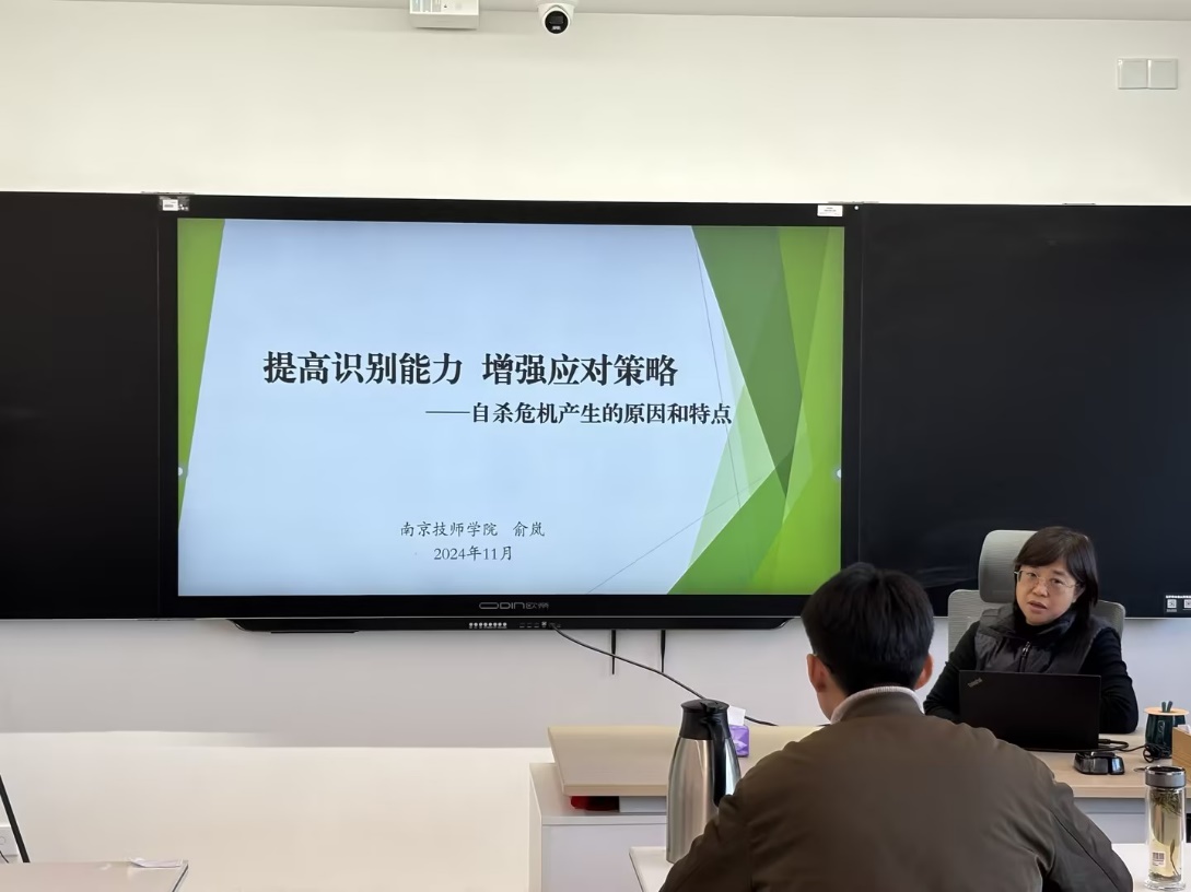 1129日下午,分管院长俞岚为心理教师团队、学工处与安保处开展了心理危机干预实务讲座。俞副院长深入浅出地介绍了青少年危机事件产生的原因与特点后,细致讲解了危机干预的具体实施方案,并就干预会谈中可能出现的若干问题提出了应对策略。