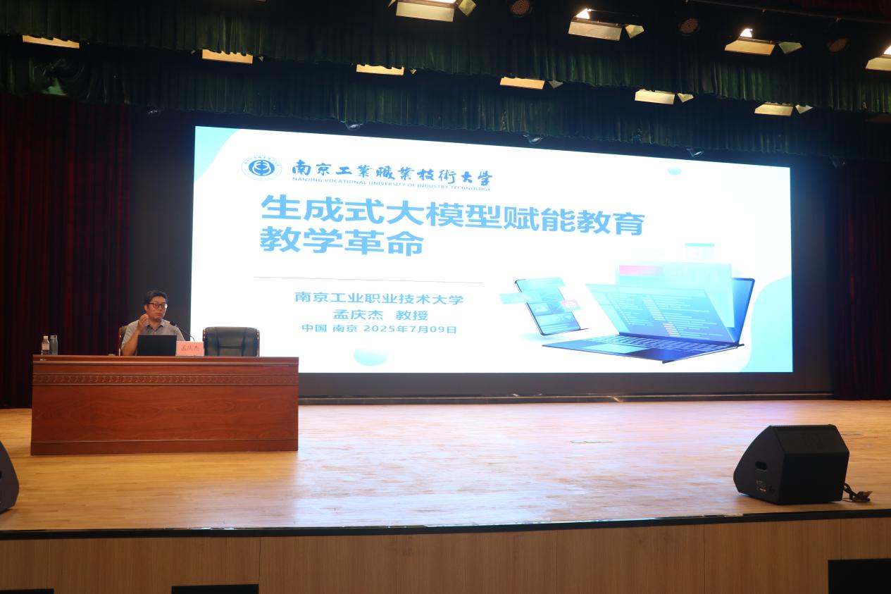 为提升教师信息化教学能力,推动人工智能技术与教育教学的深度融合,我校教务处于放假前组织全体教师参加了主题为“生成式大模型赋能教育教学革命”的专题培训。本次培训特邀南京工业职业技术大学孟庆杰教授担任主讲,内容涵盖大模型技术原理、教学应用场景及教师发展新机遇,为我校教师带来了前沿实用的知识,现场反响热烈。